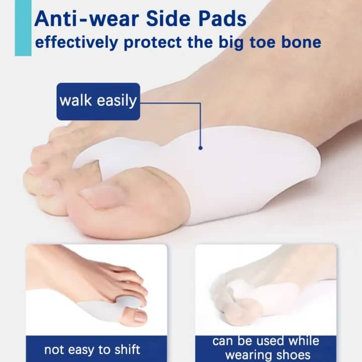 Gentle Bunion Pain Relief: Medical‑grade silicone gel cushions and realigns the big toe to reduce pressure and discomfort.